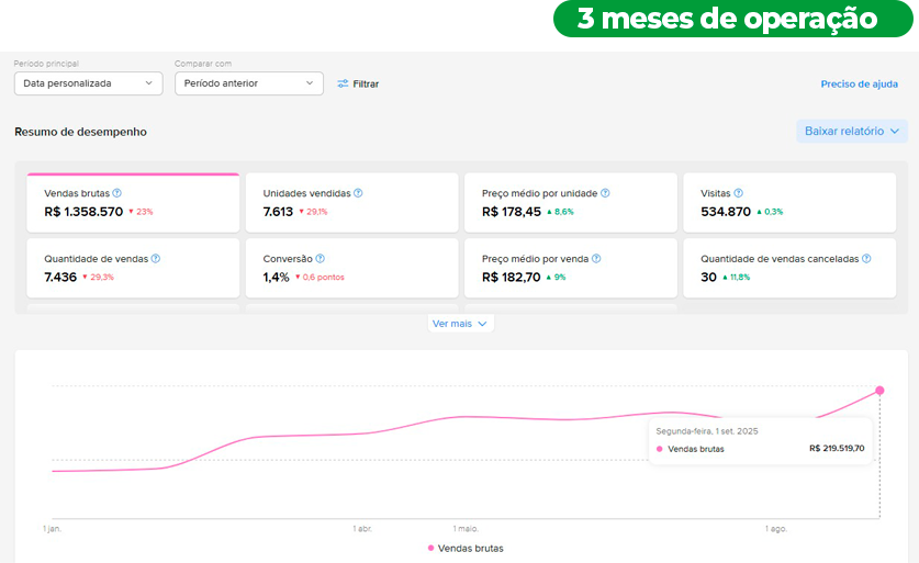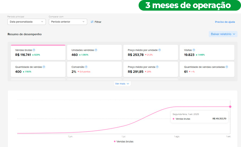 Entregamos não apenas a loja, mas uma estrutura completa, com análise de mercado, automação de cadastro de produtos, gestão de estoque e suporte contínuo.